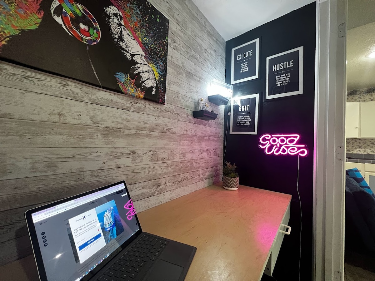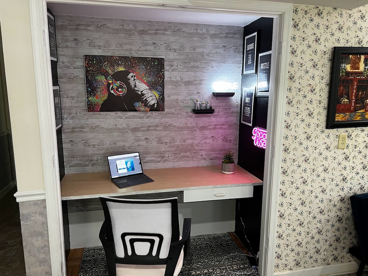 - Laptop-friendly workspace
